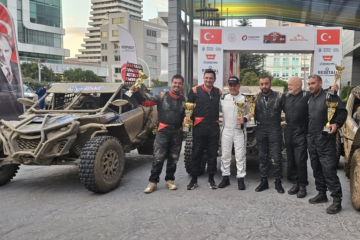 Bursa'nın üç ilçesinde, üç gün boyunca gerçekleşen Baja Resitalyarışlarında hız, dayanıklılık ve adrenalin ön plana çıkarken, 5 farklı etaptan oluşan yarışta 26 otomobil ve 52 sporcu mücadele verdi. Toplamda 200’ün üzerinde kişi görev yaptığı dev organizasyon, 12 Ekim 2025 Pazar akşamı düzenlenen ödül töreni ile son bulurken, düzenlenen törende zorlu parkuru başarıyla tamamlayan sporcular ödüllerini aldı.